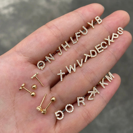 ANSTER Custom Fashion Jewelry 26 Initial Letter Stud Earrings 9K/10K/14K/18K Gold Jewelry