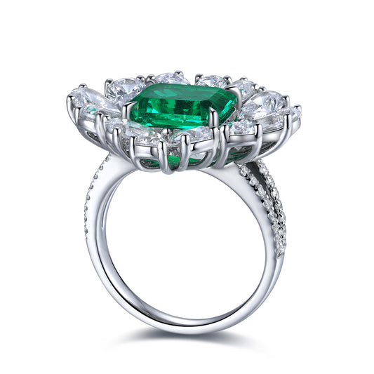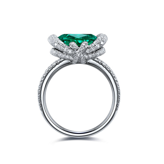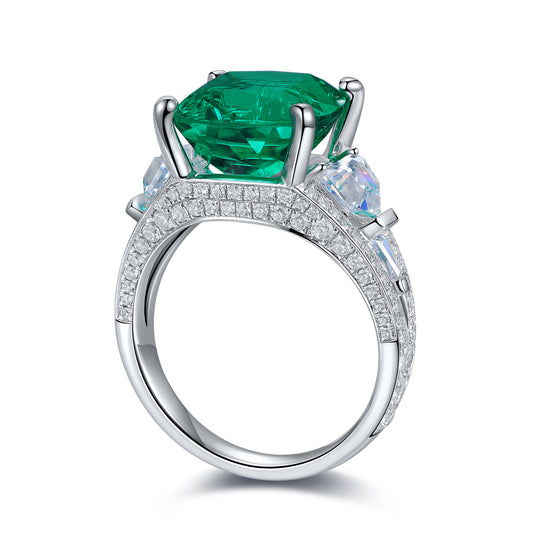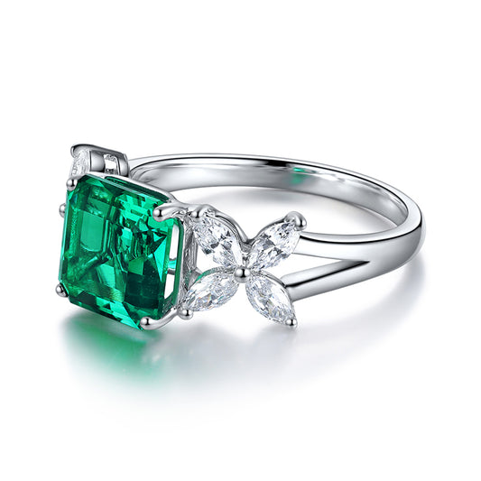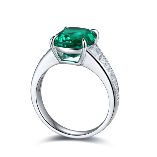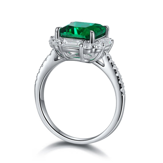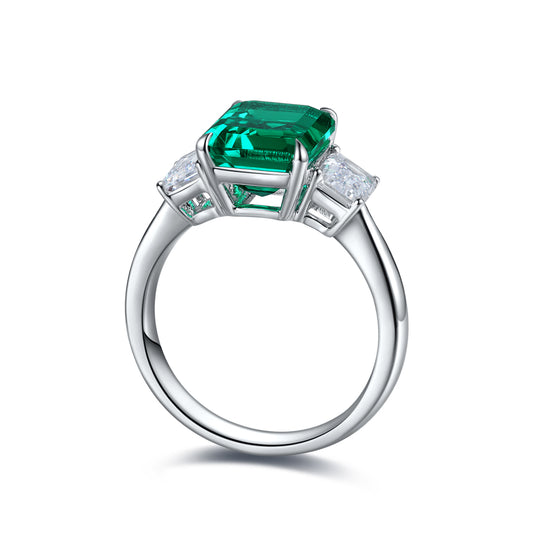 ANSTER JEWELRY 6.7 CTW Princess Lab Grown Emerald 18K Gold Ring
