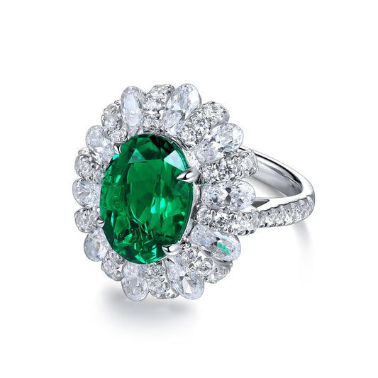 ANSTER JEWELRY 3.5 CTW Oval Lab Grown Emerald 18K Gold Ring