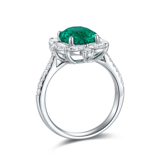 ANSTER JEWELRY 1.475ct Pear Cut Lab Grown Emerald 18K Gold Ring