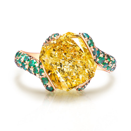 ANSTER JEWELRY 5ct Asscher Cut Fancy Yellow Lab Grown Diamond 18K Gold Ring