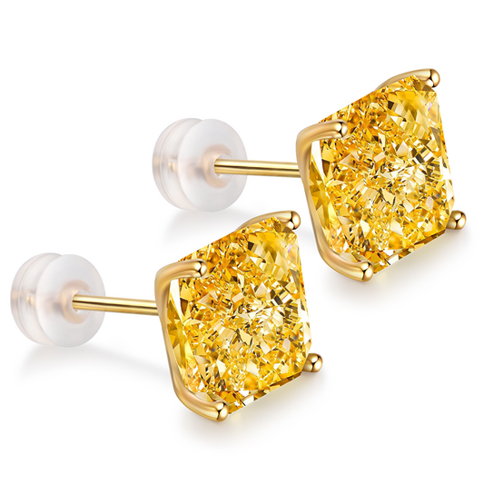 ANSTER Jewelry 18K Gold IGI 6ct Square Cut Lab Grown Yellow Diamond Earrings