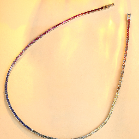 ANSTER Jewelry Rainbow Lab Grown Sapphire Platinum PT950 Tennis Necklace