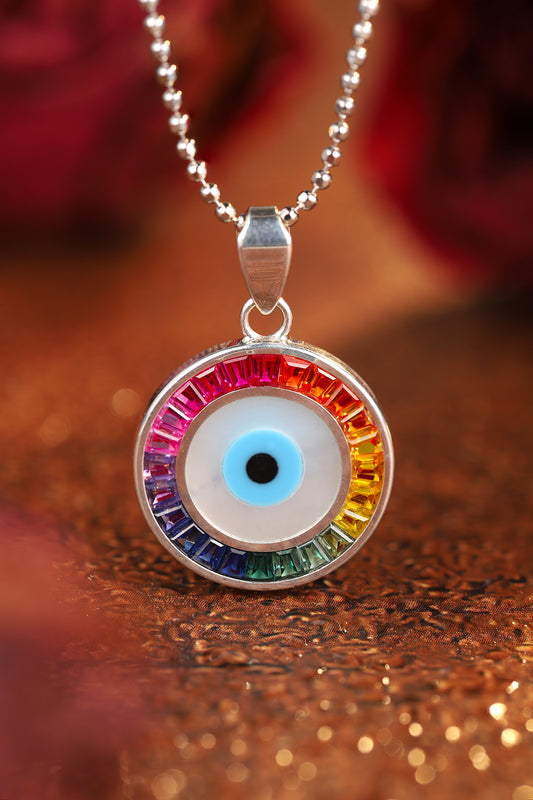 ANSTER Jewelry Princess Lab Grown Rainbow Eye Platinum PT950 Necklace