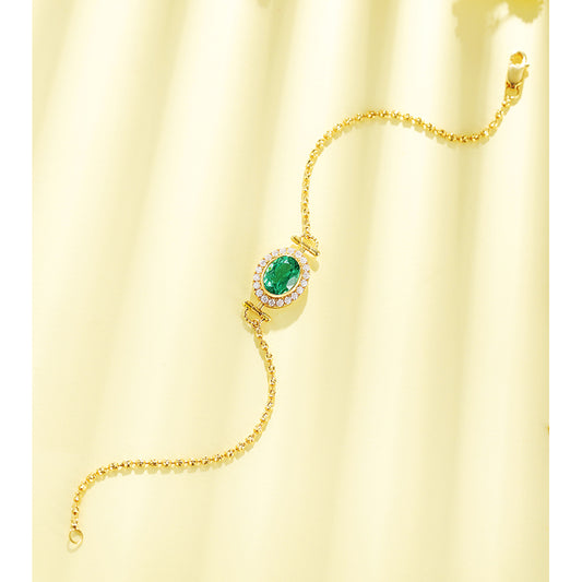 ANSTER Jewelry Custom Oval Cut Lab Emerald Lab Grown Gemstone 18K Gold Bracelet