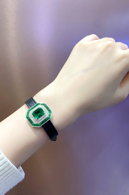 ANSTER JEWELRY 4.4 CTW Asscher Lab Grown Emerald 18K Gold Bracelet