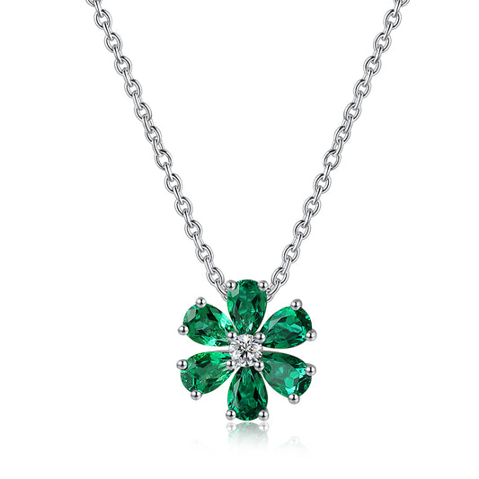 ANSTER JEWELRY 0.96CTW Pear Cut Lab Grown Emerald 18K Gold Necklace For Women