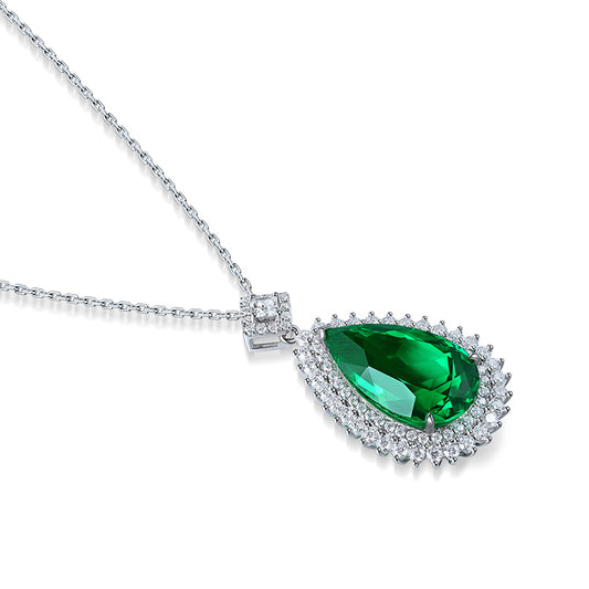 ANSTER JEWELRY 11 CTW Pear Lab Grown Emerald 18K Gold Necklace