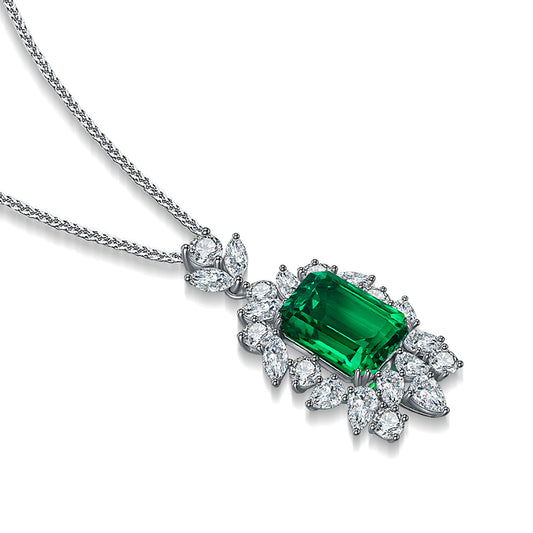 ANSTER JEWELRY 5 CTW Asscher Lab Grown Emerald 9K Gold Necklace