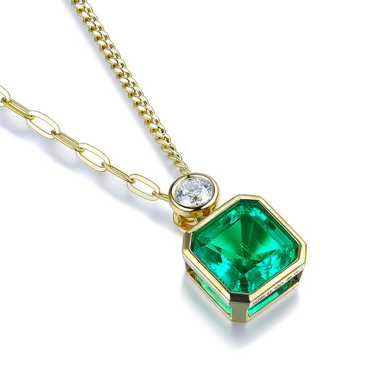 ANSTER JEWELRY 1.84 CTW Asscher Lab Grown Emerald 18K Gold Necklace