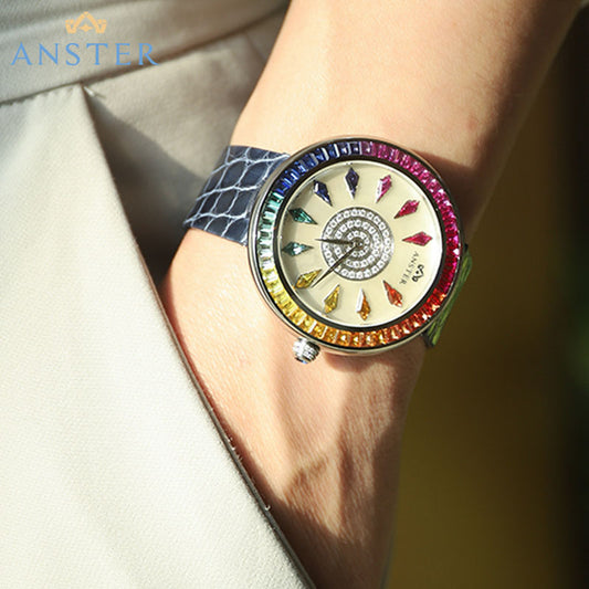 ANSTER Fine Jewelry PT950 Platinum Rainbow Lab Grown Gemstone Watch