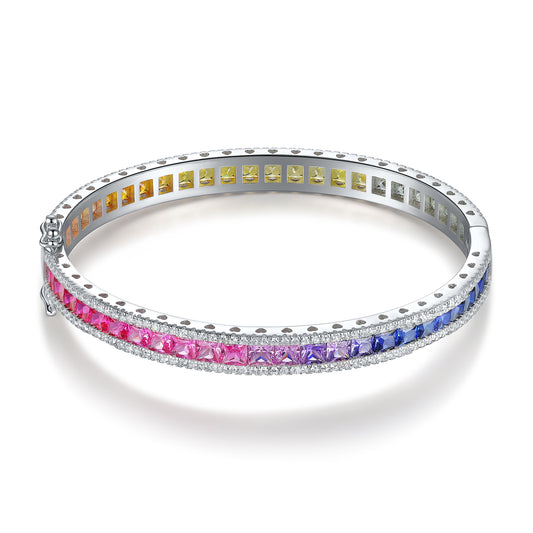 ANSTER JEWELRY Rainbow Bangle Platinum PT950 Lab Grown Bracelet For Women