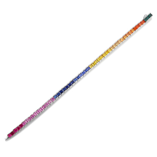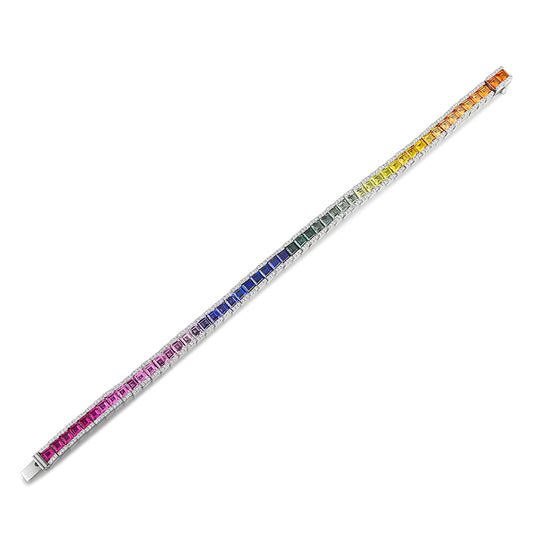 ANSTER JEWELRY Multi Color Rainbow Gemstone Tennis Platinum PT950 Lab Grown Bracelet