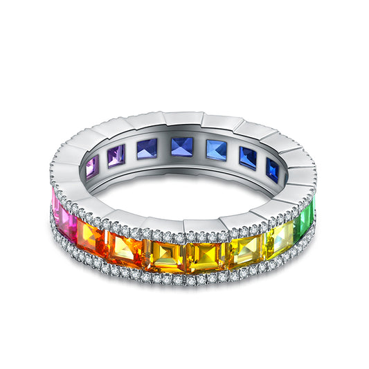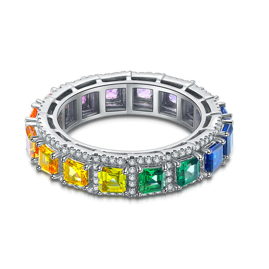 ANSTER JEWELRY Rainbow Lab Grown Gemstone Eternity BandWomen Gift