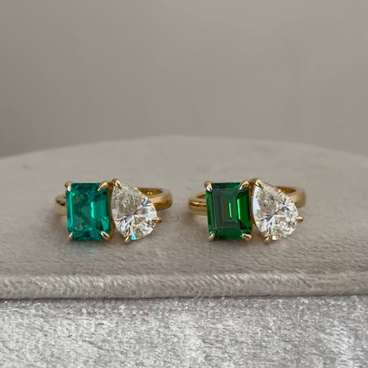 ANSTER JEWELRY 1.475ct Pear Cut Lab Grown Emerald 18K Gold Ring