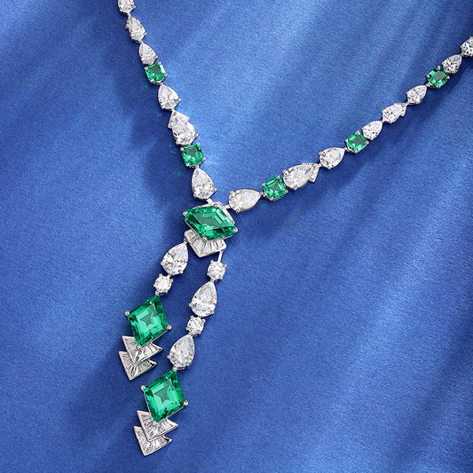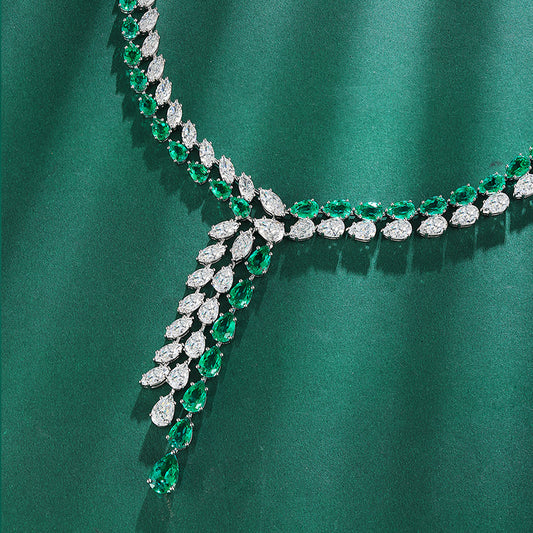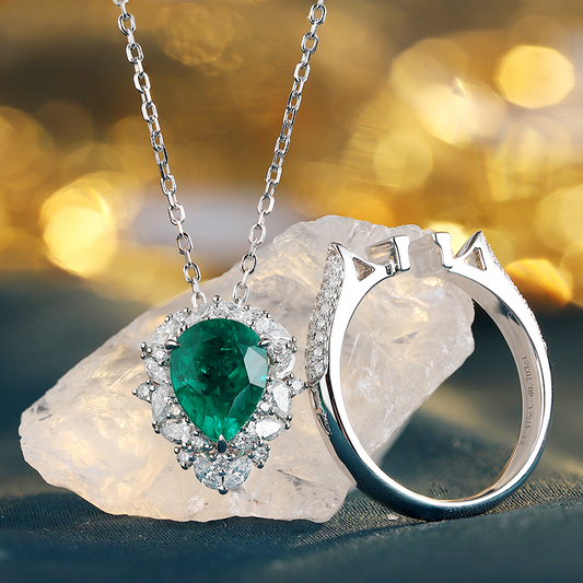 ANSTER JEWELRY Lab Emerald Lab Grown Gemstone 18K Gold Necklace Jewelry sets