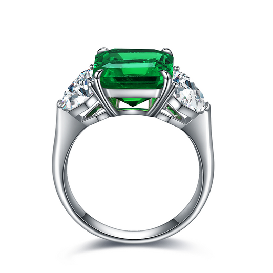 ANSTER JEWELRY 4ct Emerald Cut Emerald Lab Grown Diamond 18K Gold Ring