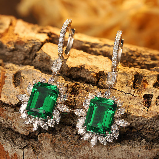 ANSTER Jewelry OEM GRC 18K Gold Lab Grown Gemstone Emerald Cut Lab Emerald Earrings