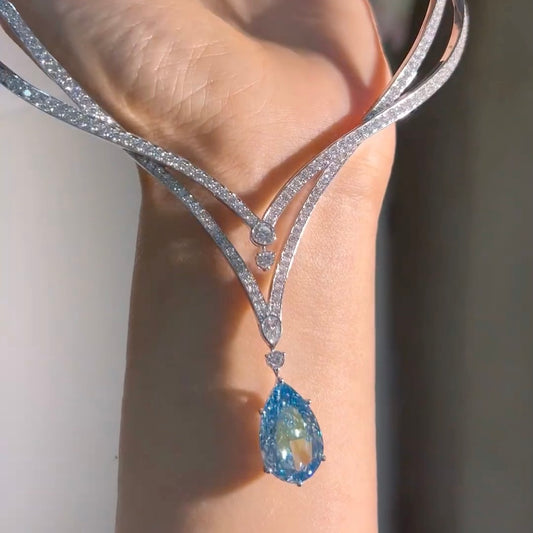 ANSTER 18K Gold Jewelry 10ct Pear Cut Fancy Blue Lab Grown Diamond Necklace with IGI