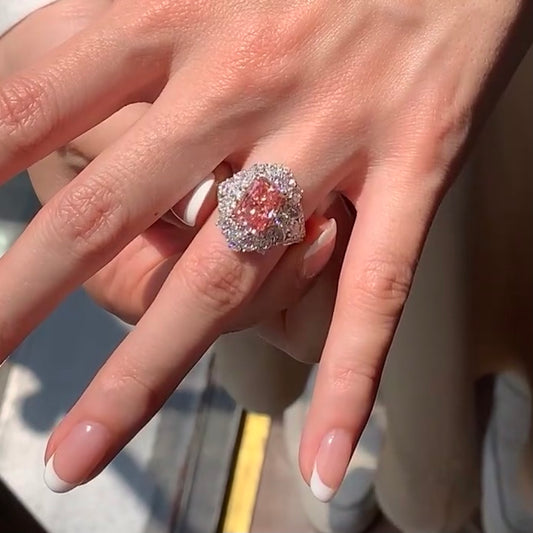 ANSTER Gold Jewelry 18K Rose Gold Ring 5ct CVD Fancy Lab Grown Diamond Ring with IGI