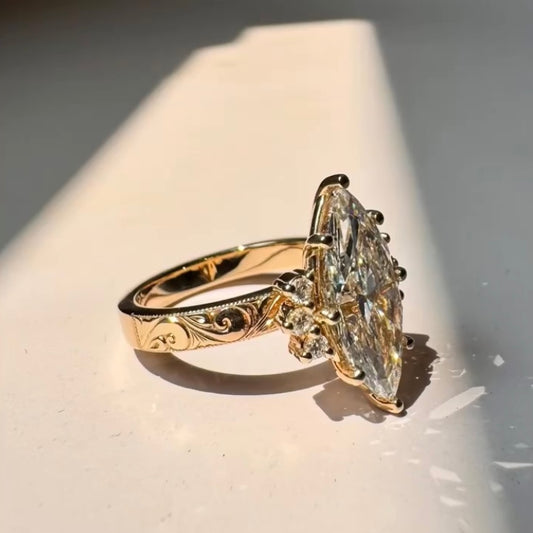 ANSTER Jewelry 18K Gold 5ct Marquise Cut Lab Grown Diamond Ring with IGI