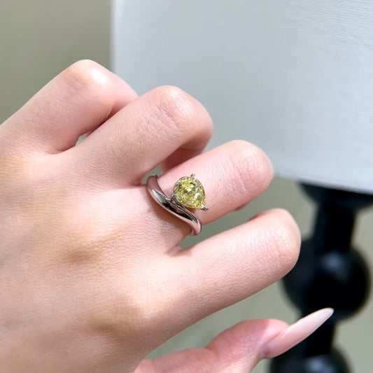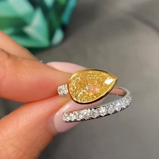 ANSTER 18K Gold Jewelry 3ct VVS2 CVD Pear Cut Fancy Yellow Lab Grown Diamond Ring with IGI