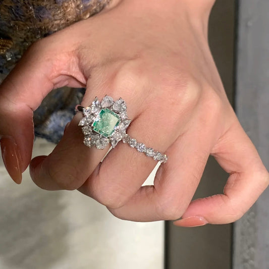 ANSTER Platinum Jewelry PT950 Ring 3ct VS1 Fancy Green Lab Grown Diamond Ring with IGI