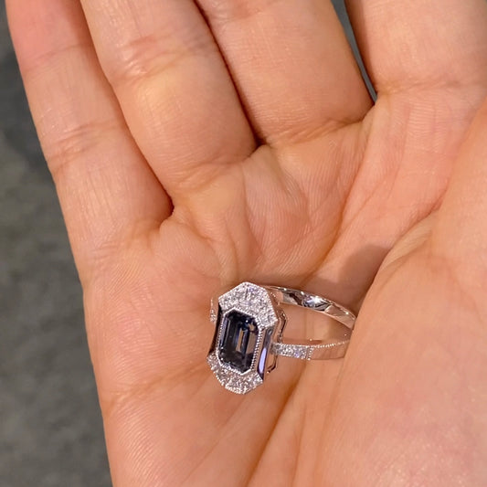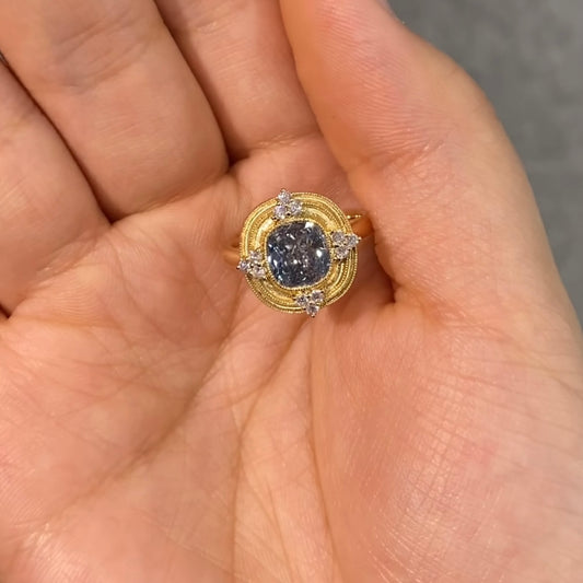 ANSTER Jewelry 18K Gold Ring VVS2 Lab Grown Blue Diamond Ring with IGI