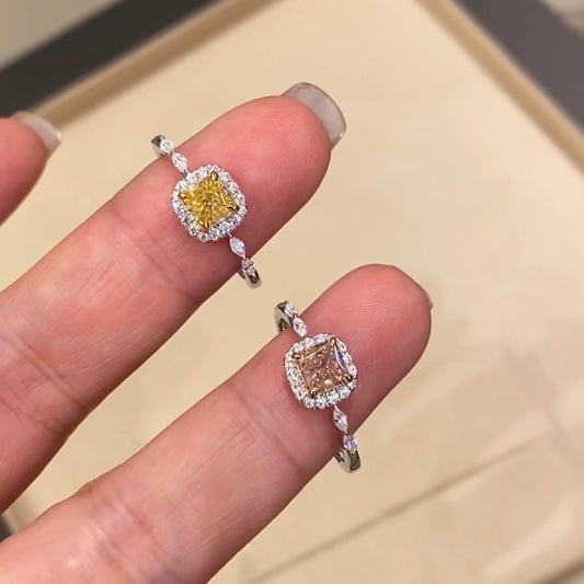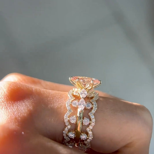 ANSTER Jewelry 18K Gold Ring 1ct VVS2 Fancy Lab Grown Diamond Ring with IGI