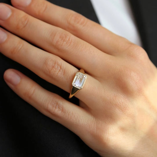 ANSTER 18K Gold Jewelry 1ct VS2 VVS1 Emerald Cut Lab Grown Diamond Men Ring with IGI