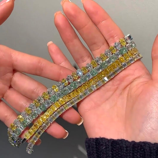 ANSTER Platinum Jewelry PT950 Fancy Lab Grown Diamond Tennis Bracelet with IGI