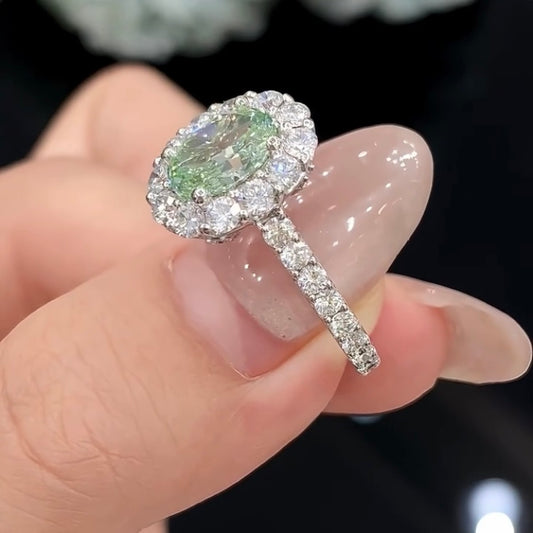ANSTER Platinum Jewelry PT950 Ring 1.36ct VVS2 Fancy Green Lab Grown Diamond Ring with IGI