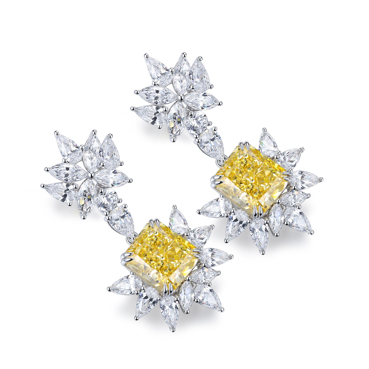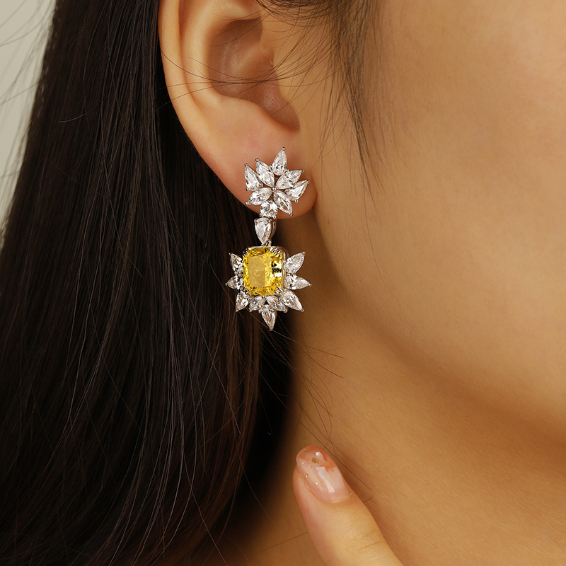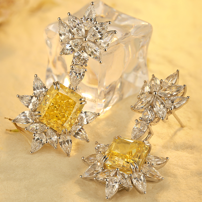 ANSTER Jewelry OEM IGI Platinum PT950 Radiant Cut Yellow Lab Grown Diamond Earrings