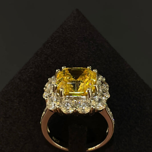 ANSTER Jewelry IGI Platinum PT950 10ct Asscher Cut Yellow Lab Grown Diamond Ring