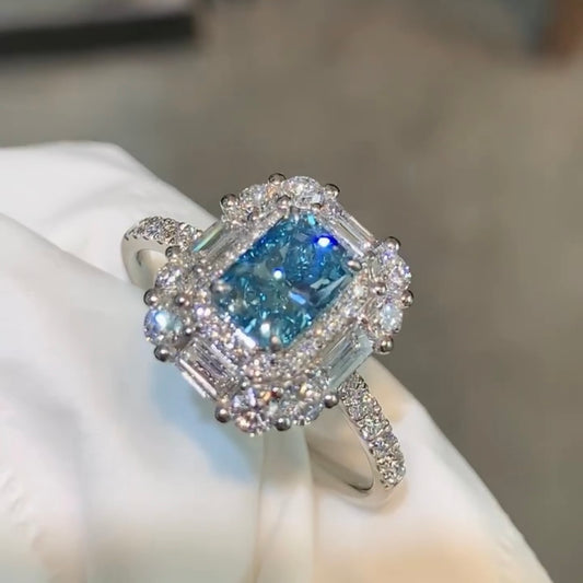 ANSTER Jewelry Platinum PT950 Ring 1ct VS2 Fancy Blue Lab Grown Diamond Ring with IGI