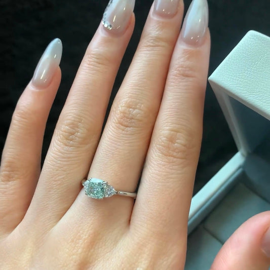 ANSTER Platinum Jewelry PT950 Ring 1.36ct VVS2 Fancy Green Lab Grown Diamond Ring with IGI