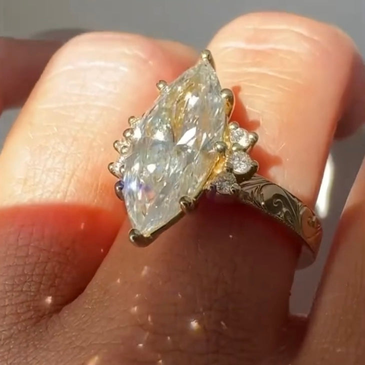 ANSTER Jewelry 18K Gold 5ct Marquise Cut Lab Grown Diamond Ring with IGI