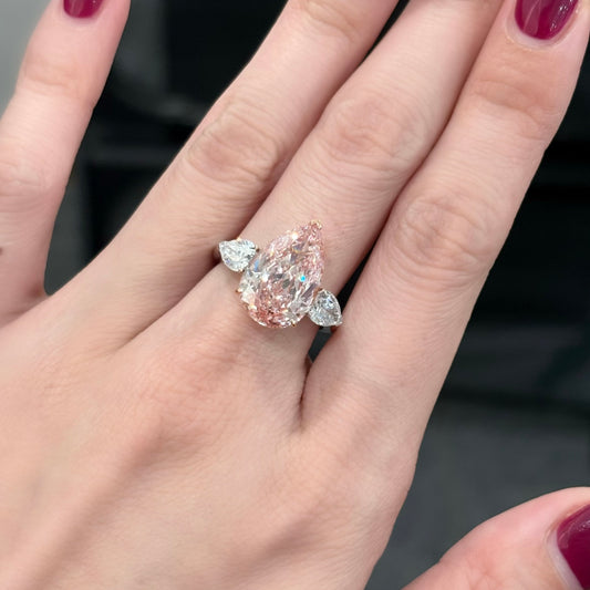 ANSTER Jewelry Anel de diamante ético feito à mão em ouro 18K com lapidação pera cultivado em laboratório