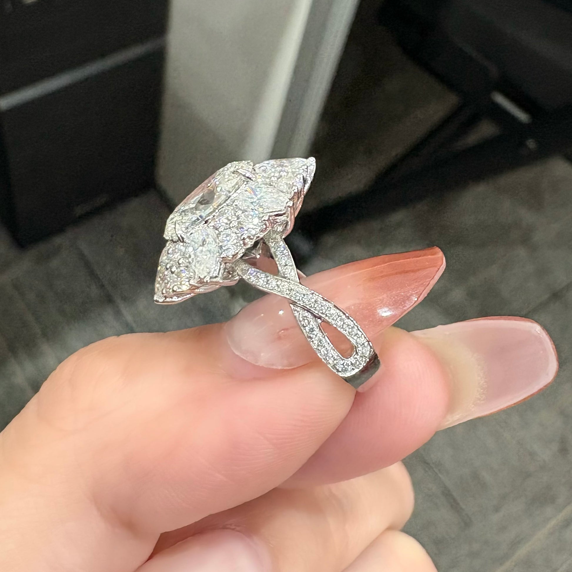 ANSTER Jewelry Anel de diamante ético feito à mão em ouro 18K com lapidação pera cultivado em laboratório
