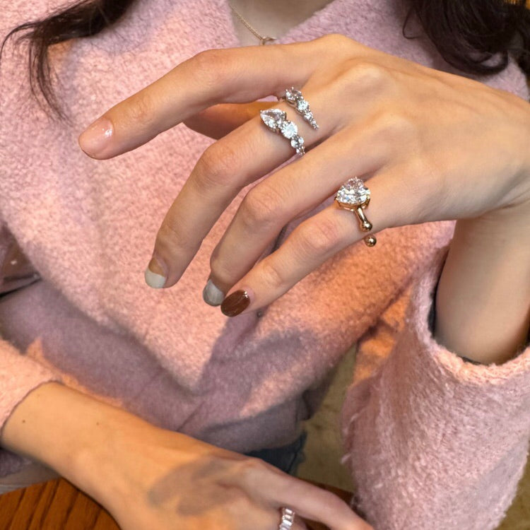ANSTER Jewelry Anel de diamante ético feito à mão em ouro 18K com lapidação pera cultivado em laboratório
