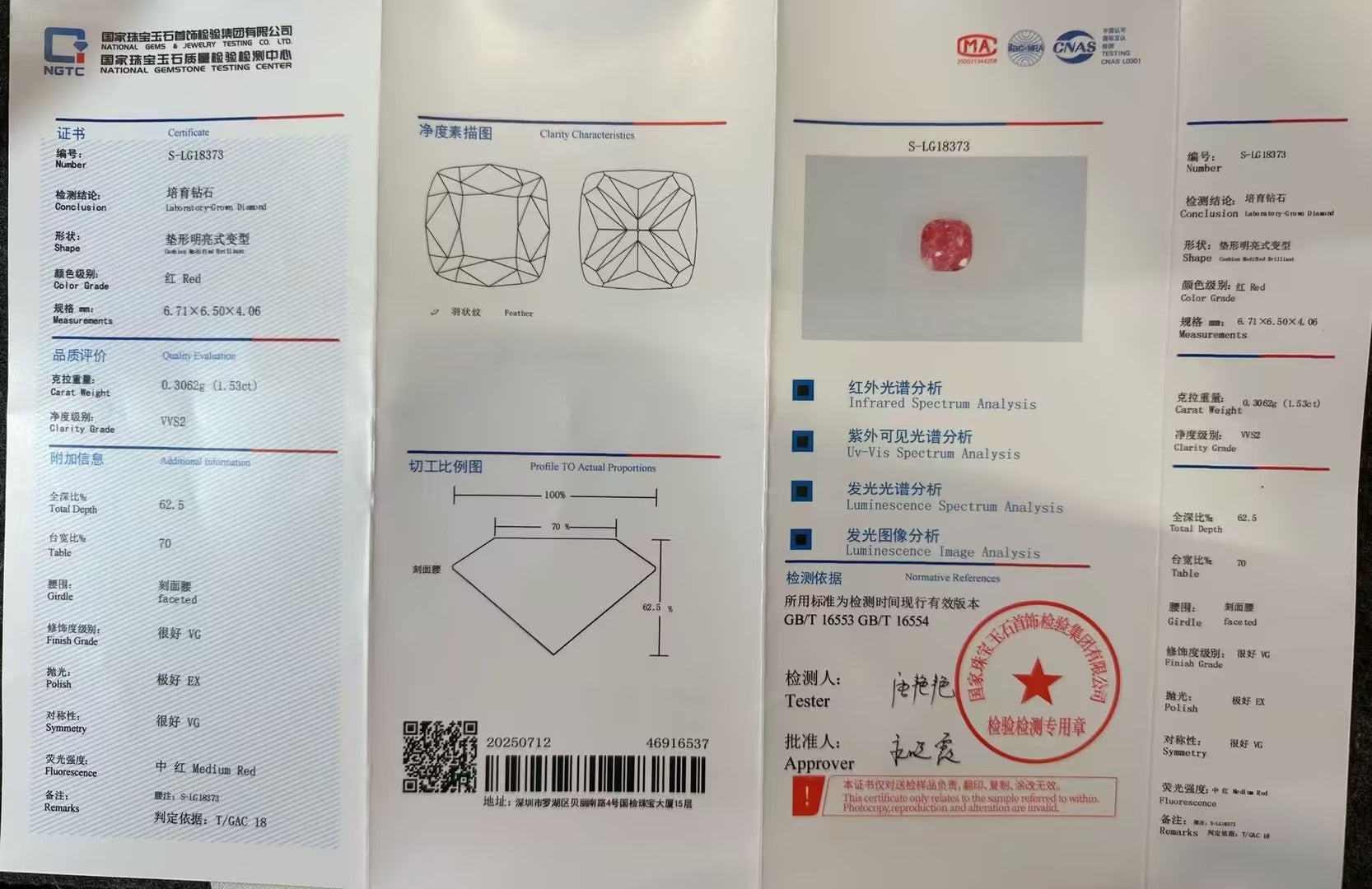 Main Stone:           1.53ct VVS1 Fancy Vivid Red Lab Grown Diamond with IGI